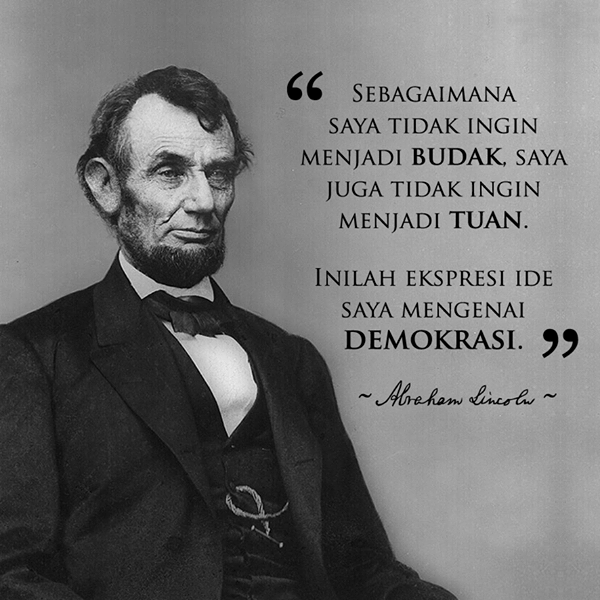 Kita tentu tak asing dengan istilah demokrasi karena demokrasi itu sendiri kini merupakan asas pemerintahan yang kini dianut oleh banyak negara di dunia termasuk indonesia. Abraham lincoln presiden keenam belas amerika serikat ini lahir di hardin county kentucky amerika serikat pada tanggal 12 februari 1809. Dia memimpin bangsanya keluar dari perang saudara amerika mempertahankan persatuan bangsa dan menghapuskan perbudakan.