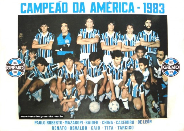 O campeao deste ano foi o gremio foot ball porto alegrense do rio grande do sul equipes participantes. Neste domingo a rbs tv ira retransmitir a final da libertadores de 1983 a partir das 16h para todo o rio grande do sul. Gremio campeao da america em 1983 com transmissao da tv globo.