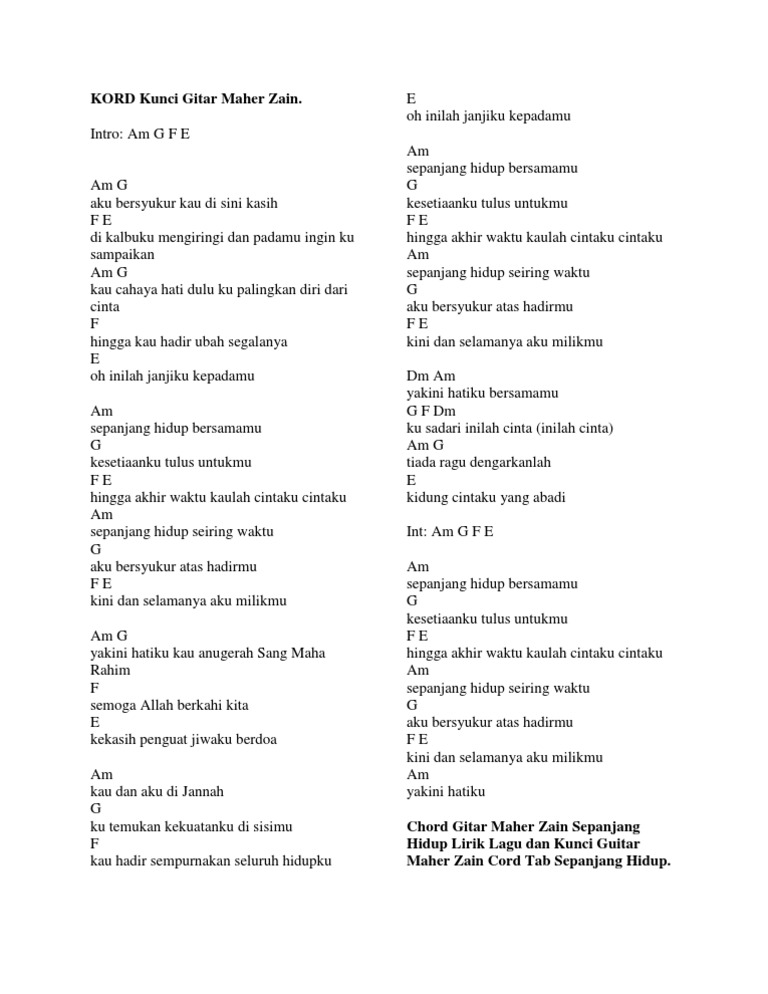 Aku bersyukur kau di sini kasih di kalbuku mengiringi dan padamu ingin ku sampaikan kau cahaya hati. Lyrics to sepanjang hidup by maher zain. Video terkait tidak ditemukan.